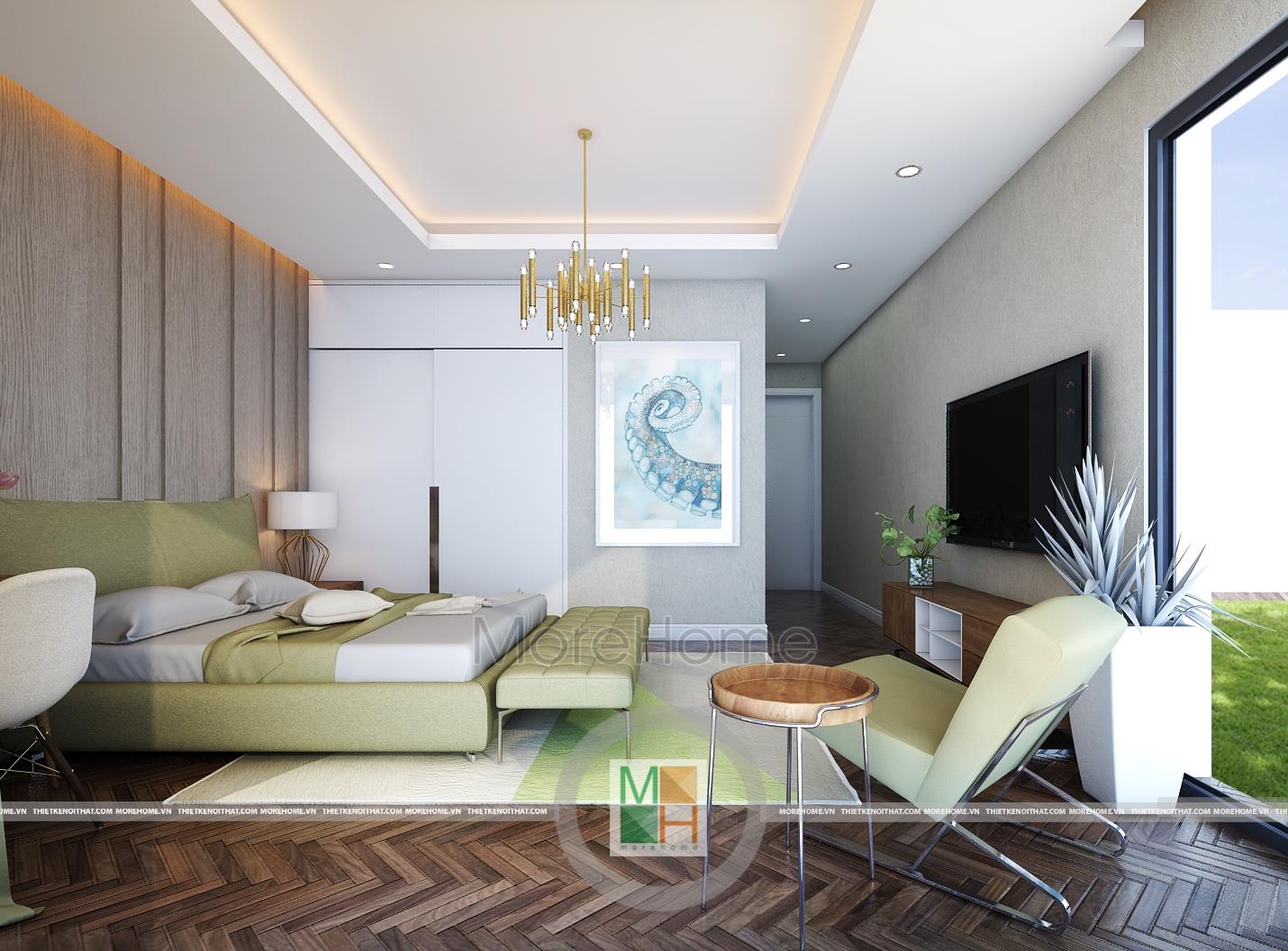 Phòng ngủ khách sạn hiện đại không gian mở